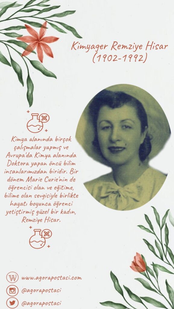 Remziye Hisar’ın hayatını anlattığım yazıya da şuracıktan ulaşabilirsiniz. http://agorapostasi.com/bilimtarihindekadinlar/bilim-tarihimizde-oncu-bir-kadin-remziye-hisar/