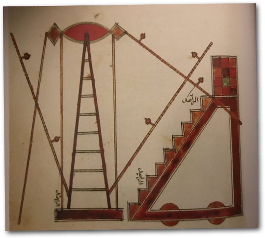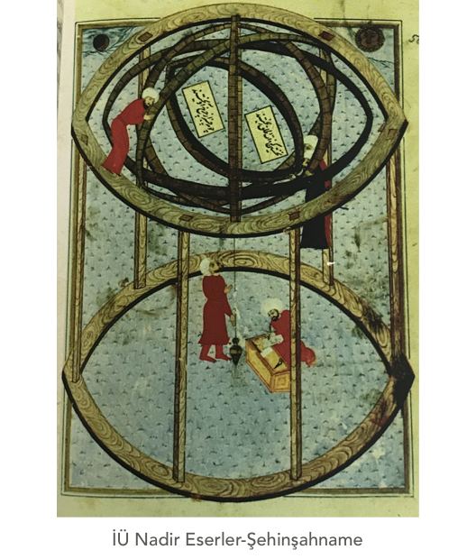Şehinşahname eserinde bulunan minyatürde bulunan farsça yazının anlamı ise “İlk önce çok halkalı aracı yaptılar. Gökten ay gibi sarkıttılar.” yazıyor. Bu ifade aynı zamanda Alaaddin Mansur’un şiirinde de geçmektedir.