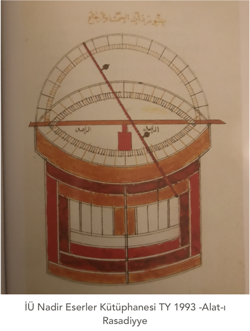 Bize rasathanedeki gözlem aletleriyle ilgili oldukça detaylı bilgiler veren “Alat-ı Rasadiyye li Zic-i Şehinşahiyye” isimli eserin müellifi bilinmiyor. Ancak Takiyüddin’in notlarına dayandırıldığını biliyoruz, bu sebeple bu eseri yazan kişinin, Takiyüddin’in yanında çalışan biri olduğu düşünülüyor. Gözlem aletleriyle ilgili bilgilerin yanı sıra aletlerin resimlerinin de verildiği bir eser bu. Günümüze 6 nüshası kalmış. 1579’da yazılmış olan bir nüshası bugün Kandilli Rasathanesi Kütüphanesi’nde bulunmaktadır. Diğer nüshalar ise İstanbul Üniversitesi Merkez Kütüphanesi Nadir Eserler Bölümü’nde ve Topkapı Sarayı Müzesi Kütüphanesi’nde bulunuyor. Ayrıca Kütahya Vahid Paşa Kütüphanesi’nde de bir adet nüsha bulunmaktadır. Diğer iki nüsha ise Paris ve Kahire’de bulunmaktadır.