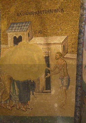 Ayrıca İstanbul’da bulunan Kariye Müzesi’nde cüzzamlı bir hastanın iyileştirilmesi üzerine bir mozaik tasvir edilmiştir. Bu tasvirdeki cüzzamlı kişi, İsa’dan kendisini iyileştirmesini istemesi üzerine, İsa cüzzamlı hastaya dokunarak onu iyileştirmiştir. Cüzzamlı kişinin üstündeki noktalarla cüzzamlı olduğu belirtilmiştir. Tasvirin üzerinde “Cüzzamlıya Mesih’in şifası” yazılıdır. Ancak Kariye Müzesi’ndeki bu tasvir tahrip olmuştur.
